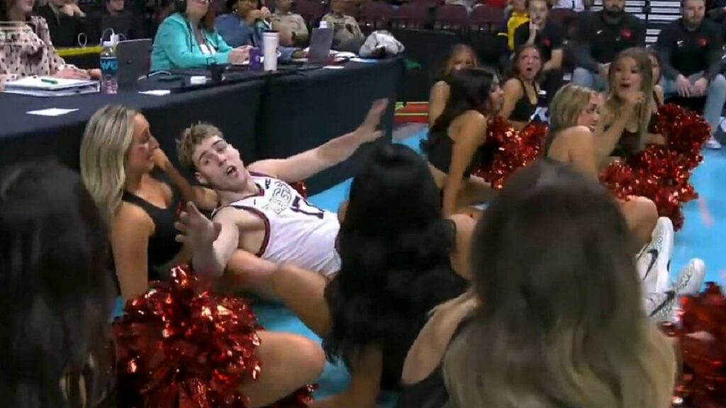 Basketball Player Collides with Cheerleader During Game, Gets Helped Away